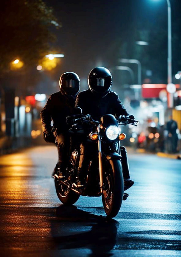 Мотоцикл мчался по ночным улицам города, освещённого огнями фонарей и витрин магазинов. Мелькающие отблески от реклам салютом уходили в ночное небо, а мы с всё дальше и дальше уходили от засады и возможной погони.