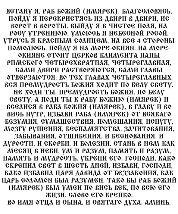 После этого приступайте к чтению заговорных слов. Но перед ними обязательно прочитайте молитву: