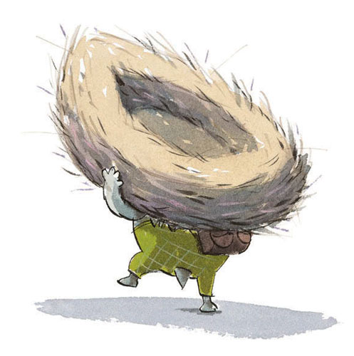 О, что это было? На земле лежала какая-то вещь, похожая на сплетённый из веток домик. Размер как раз подходящий. Но сможет ли он плыть? Вещь оказалась старым гнездом сороки, некогда ураган сорвал его с кроны дерева, и теперь оно лежало в траве всеми покинутое, прямо-таки просясь в плавание по ручью. Латте взвалил гнездо себе на спину, отнёс на берег и опустил на воду. И глядите-ка – гнездо сороки замечательно плавало! Гораздо лучше, чем плот из коры. Латте запрыгнул внутрь.