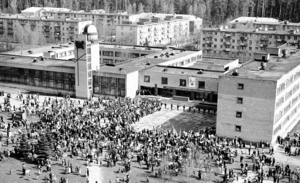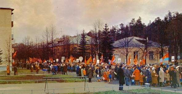 Первомайская демонстрация на площади школы №82 (фото из архива А. Жаркова)