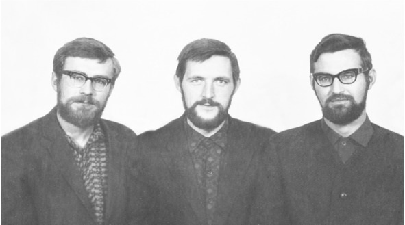 Первые норильские бородачи Первого норильского стройотряда. Костя Фирюлин, Слава Грачёв, Рустэм Любовский. 1969г.