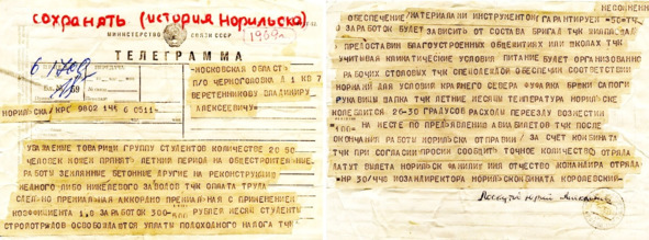 Эта телеграмма явилась тем самым маленьким снежным комком, который привел в движение многодесятилетнюю лавину стройотрядов черноголовцев в Норильск и по всему Союзу.