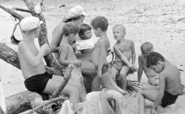 Вспоминается ещё один наш героический поступок. Как-то море сильно штормило, мы, сидя в будке на берегу, играли в карты. Из-за шума волн едва услышали крики на море, выскочили и увидели две человеческие головы, то появляющиеся, то исчезающие в больших волнах. Прыгнули в эту бушующую стихию, добрались до измождённых борьбой с волнами молодой девушки и парня, общими усилиями едва зацепились за берег. Ребята были настолько испуганы и замучены, что говорить не могли. Мы их оставили прийти в себя в надёжном месте на песке и вернулись в палатку.