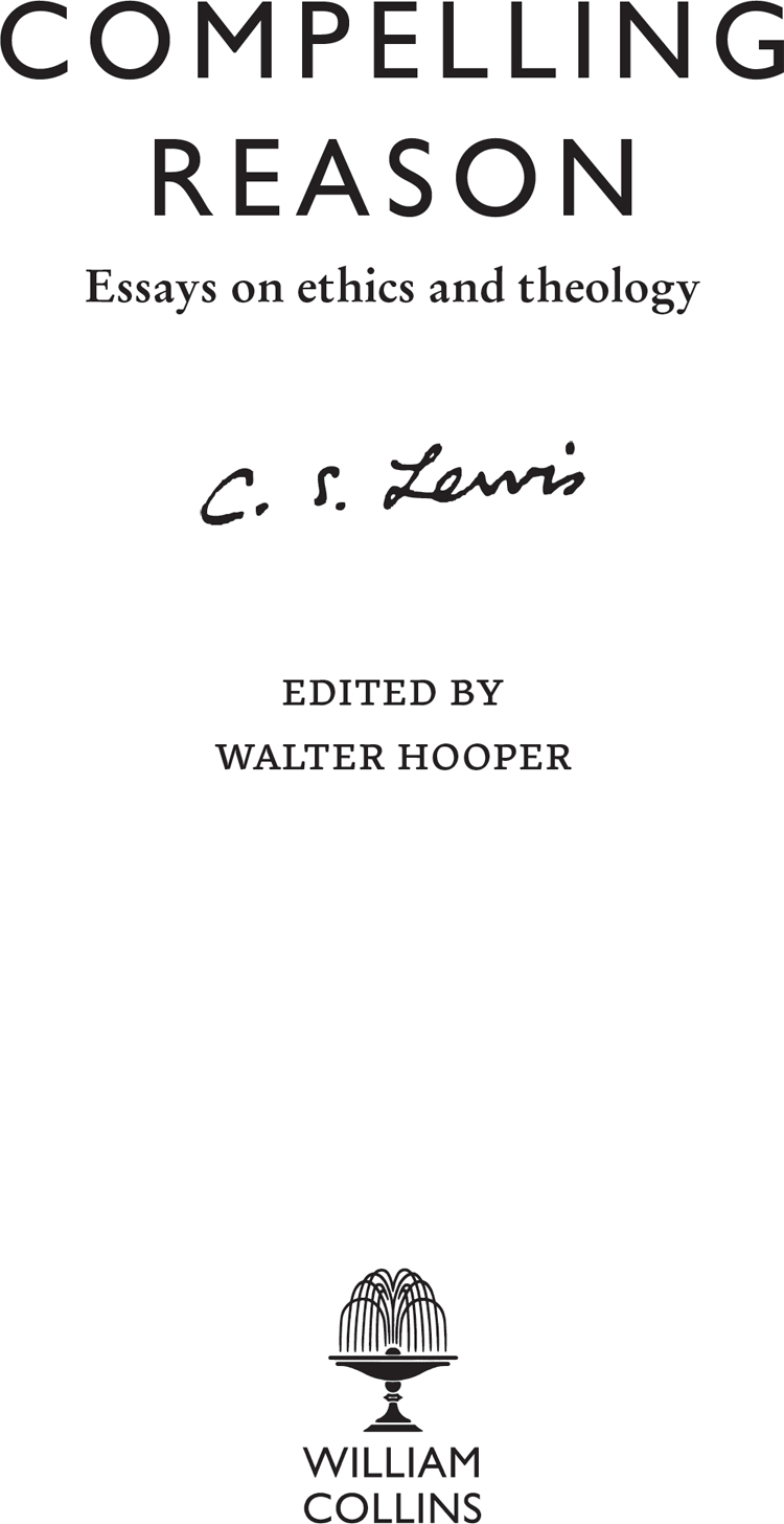 The material in this compilation was previously published in: ‘First and Second Things’, first published in Undeceptions by Geoffrey Bles, London 1971; first Fount Paperbacks edition published in 1985 (essays 2, 3, 6, 10, 13, 15, 16, 18, 21); copyright © 1985 C.S. Lewis Pte Ltd. ‘Present Concerns’, first published in 1986 by Fount Paperbacks (essays 4, 5, 7, 8, 9, 11, 17, 22, 23); copyright © 1986 C.S. Lewis Pte Ltd. ‘Timeless at Heart’, first published in 1987 by Fount Paperbacks (essays 1, 12, 14, 19, 20, 24); copyright © 1970, 1980, 1987 C.S. Lewis Pte Ltd