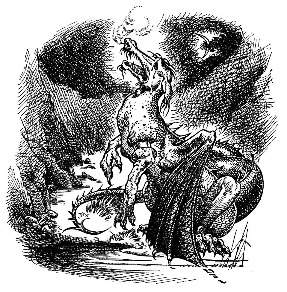 Он в ужасе понял, что там и правда кто-то ползёт, даже хуже того – выползает. Эдмунд и Люси, а возможно и вы, сразу узнали бы, кто это, но Юстас нужных книг не читал. То, что выползало из пещеры, ему не могло присниться даже в самом страшном сне. Это была длинная, свинцового цвета морда с тусклыми красными глазками. Ни меха, ни перьев, небольшое тельце волочится по земле, коленки торчат вверх, как у паука, крылья – как у летучей мыши, мощные когти царапают камни, хвост длиной в несколько ярдов. А струйки дыма выползали из ноздрей. Юстас не произнёс слова «дракон», а если бы и сумел, лучше ему от этого вряд ли бы стало, но, возможно, если бы он хоть что-то знал о драконах, его удивило бы поведение этого. Он не хлопал крыльями, не пускал из пасти пламя. Дым из его ноздрей напоминал дымок костра, который скоро погаснет. А кроме того, он, казалось, не обратил на Юстаса никакого внимания, а продолжил очень медленно, с частыми остановками ползти к пруду. Несмотря на охвативший его страх, Юстас понял, что перед ним дряхлое, жалкое существо, и подумал, не рискнуть ли выбраться отсюда, но побоялся привлечь к себе его внимание. Возможно, сейчас оно просто притворяется, но вдруг проявит больше живости. Да и какой смысл пытаться удрать ползком от существа, способного летать?