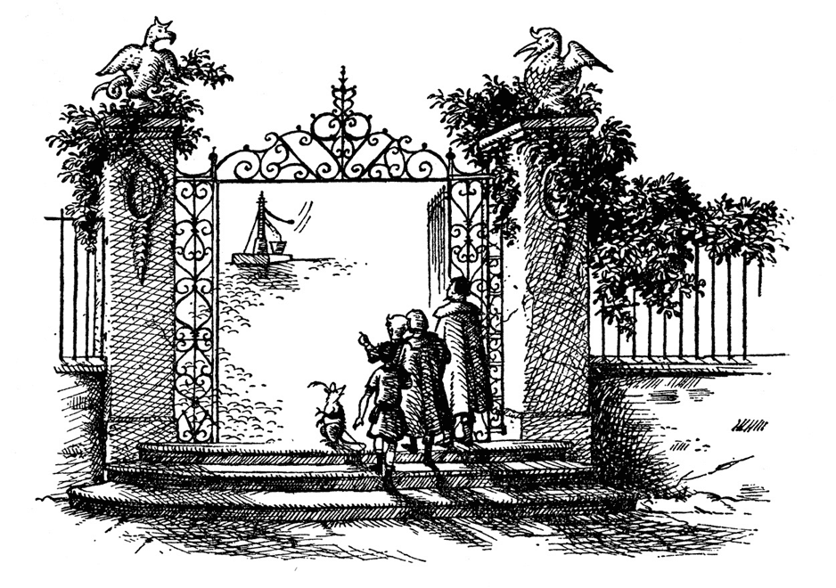 Широкие ворота были открыты, и вся компания вошла в мощёный двор. Тут же всем стало ясно, что на этом острове творится что-то странное. Посреди двора стоял насос, под ним ведро: в этом ничего странного не было, – но вот рукоятка насоса двигалась вверх-вниз, хотя никого не было видно рядом.