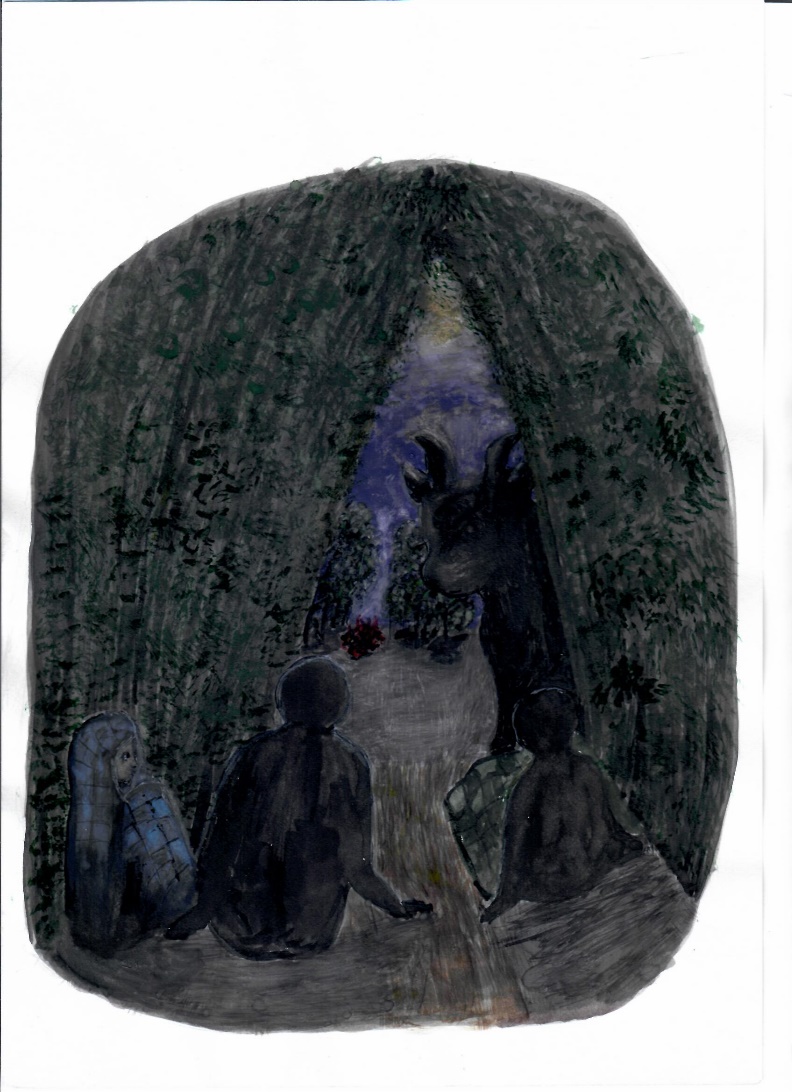 Костёр потух, а дядя Коля всё рассказывал и рассказывал. Увлёкшись, он перешёл от зимы к истории из своего детства, проведённого в Ашхабаде, и потянулся к колоде добрать карты. Как вдруг неподалеку послышались шаги. Вмиг все замерли. Шаги уверенно и тяжело приближались к шалашу. В полной неподвижности все оставались на своих местах. Лиза не дышала. В её голове громкими ударами колотилось сердце. Она вспомнила про флажок, который водрузила над входом. Теперь-то шалаш не останется незамеченным. «Ах, зачем?! Ну зачем нужен был этот флажок? Кабы знать заранее, где соломку постелить!..» – с досадой думала она.