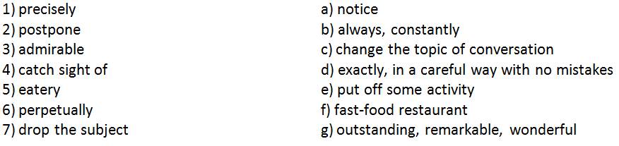 Exercise 1. Choose the right explanation or synonym to the words and word expressions in the left column.