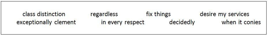1) Who is Jeeves? How would you describe him? 2) How did Bertie Wooster start his day? 3) What season was it? What kind of weather? 4) Who phoned Wooster in the morning and what did he want? 5) Where did Bingo take Wooster to meet his new affection? 6) Why did Wooster call this girl “the female poisoner”? 7) Where did Bingo meet Mable? How did he get there? 8) What advice did Bingo need and who did he desire to receive it from? 9) What did Jeeves suggest doing in this situation? 10) Do you think the valet’s advice will work out? Why?