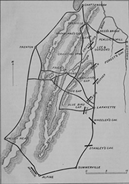 A previous letter left the Army of the Cumberland where its strategy had thrown it across three mountain ranges and the Tennessee River, and brought it without loss to the rear of Chattanooga, at the foot of the eastern base of the Lookout Mountain. This had compelled Bragg to withdraw toward Lafayette. The left of the Union army, under General Crittenden, had passed around the north end of Lookout, marched through Chattanooga after Bragg, and occupied Rossville Gap. General McCook, forty-two miles to the right, had descended to Alpine, while the center, under General Thomas, was at Steven's Gap, directly opposite Bragg's center, at Lafayette.