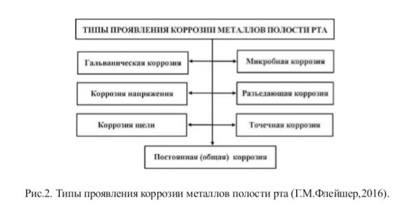 На Рис.2, представлены типы проявления коррозии металлов полости рта.