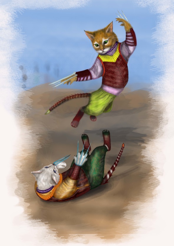 Комиссия была явно в растерянности. Ведь поединки с противоположным полом были запрещены. Коты и кошки всегда тренировались раздельно. Но вызов прозвучал не на дуэль, а на экзаменационный поединок. Поэтому возражений не нашлось.