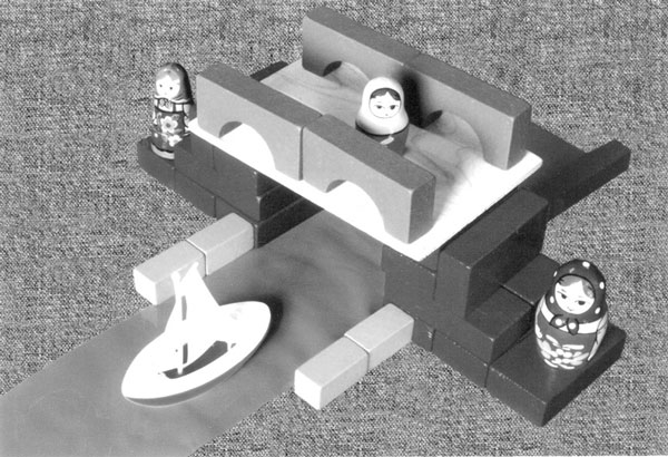 6. Стык деталей нужно укрепить, придавив другой деталью. (Это правило проиллюстрировано в Рис. 4: призма укрепляет полукуб, кирпич образует стенку двухквартирного дома).