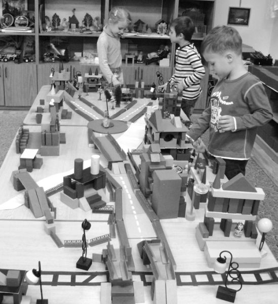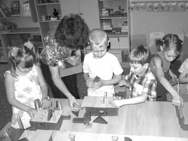 • сохранять устойчивый интерес к его конструированию, пополняя (в старшем дошкольном возрасте) его запасы новыми наборами строительного, конструктивного материала (из разных деталей), Лего-конструкторами[2]. Деревянный строительный набор открывает детям всех возрастов безграничные возможности для развития творчества, конструирования и режиссёрских игр, побуждающих к дружеским взаимоотношениям партнёров с четырёх лет (если оба были обучены этой деятельности);