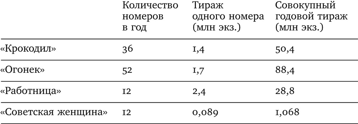 Таблица 1. Тиражи популярных советских журналов в 1960 году
