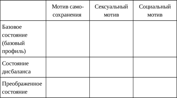 Базовое состояниеСостояние дисбалансаСостояние преображенияСексуальный мотив
