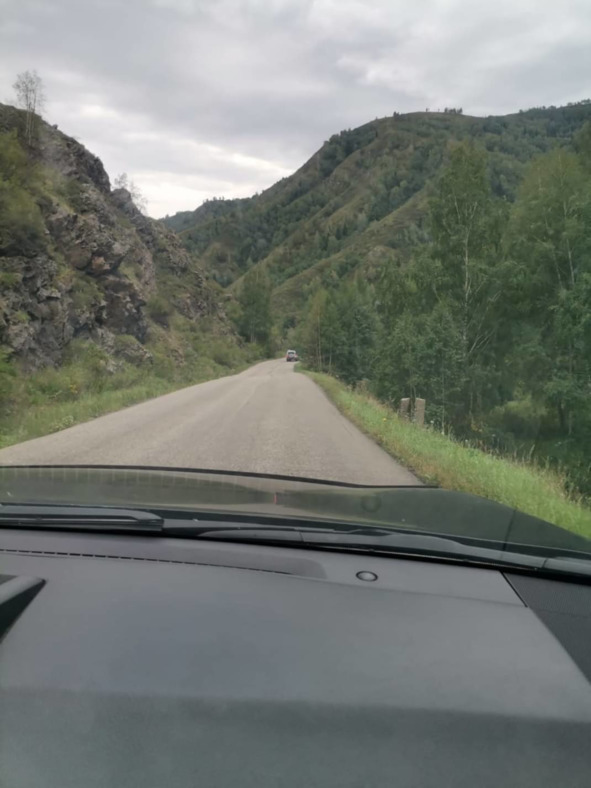 Дальше нас ждала дорога полегче, более пологая с затяжными подьемами и спусками. К обеду доехали до города Алтай, бывший Зыряновск. На въезде стояла стелла с надписью, что город был основан 220 лет тому назад. Здесь нас должен был встретить Василий. Он подъехал на своей машине через 15 минут. Познакомились. Ему было где-то под 70 лет, худощавый, среднего роста. Сели по машинам и поехали за ним. Оказывается надо было проехать ещё 120 км от Зыряновска до его дачи.