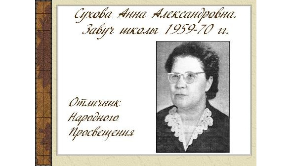 А бабушка Наталья Павловна родом была из села Шогрыш, в Писанец когда-то вышла замуж. Её село было очень далеко, связи с земляками не было. И вот обнаружилось, что учительница русского языка у моего брата Анатолия – внучка человека из села Шогрыш. И бабушка его знает. Этого было достаточно, чтоб принимать у нас Анну Александровну Сухову (это она была учительницей Анатолия) как родственницу. Она бывала у нас, ходила к нам в баню, они с бабушкой дружили, много разговаривали. Её содействие и помогло маме устроиться в школу уборщицей.