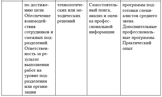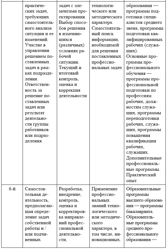 Описание уровней квалификации