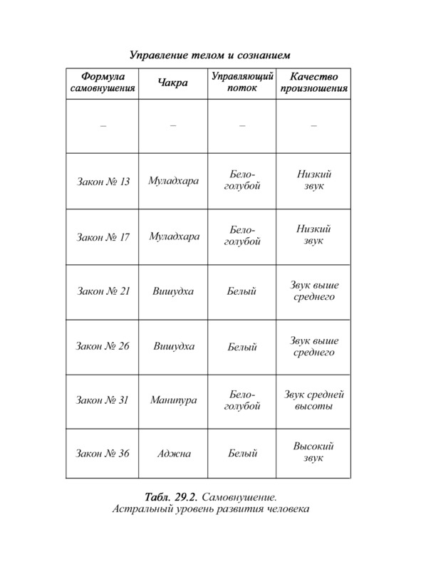 15.4. САМОВНУШЕНИЕ АСТРАЛЬНОГО УРОВНЯ РАЗВИТИЯ ЧЕЛОВЕКА (85 законов)