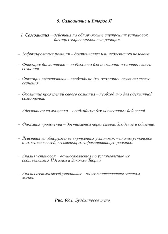 7. Самоанализ – достигается интеллектуальным и духовным развитием, знанием законов проявления качеств и их последствий.