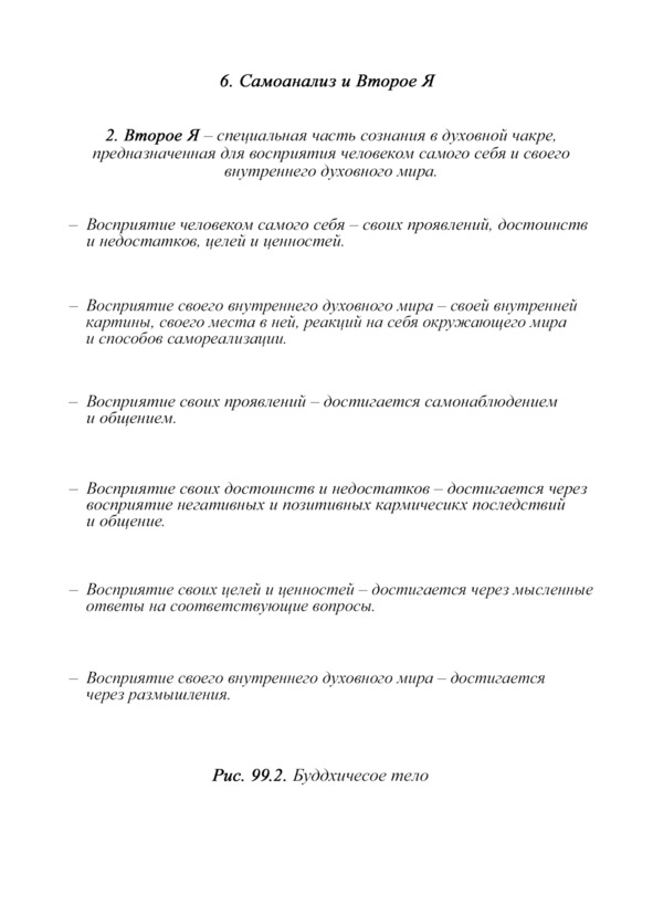 8. Интеллектуальное развитие, направленное на самопознание, – достигается изучением законов логики и деятельности интеллекта, самоанализом и развитием второго Я.