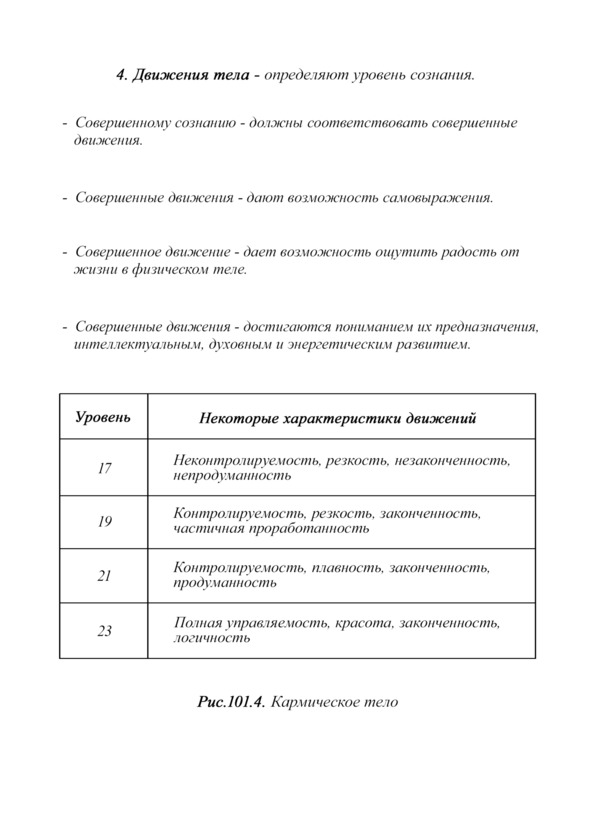 5. Движения тела – достигаются пониманием их предназначения, упорными занятиями, интеллектуальным, духовным и энергетическим развитием.