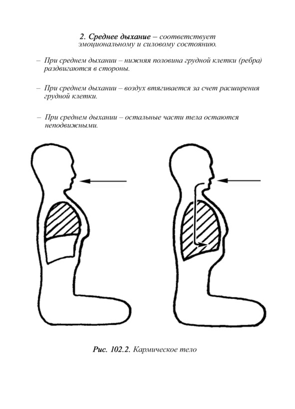 11. Среднее дыхание – приводит к неэкономичной растрате астральных и ментальных энергий человека, частично к застойным явлениям и учащенному сердцебиению.