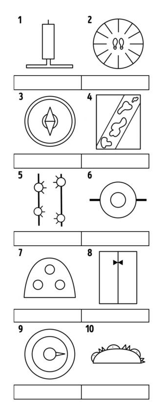 Просмотрите приведенные ниже рисунки и предложите свои версии того, что на них нарисовано. Запишите их в прямоугольниках под рисунками. Проверьте свои предположения по ключу, данному под рисунками.