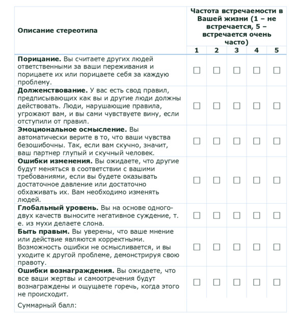 Пожалуйста, оцените приведённые ниже стереотипы поведения по частоте встречаемости каждого из них в вашей жизни по пятибалльной шкале, где 1 – не встречается, 5 – встречается очень часто.