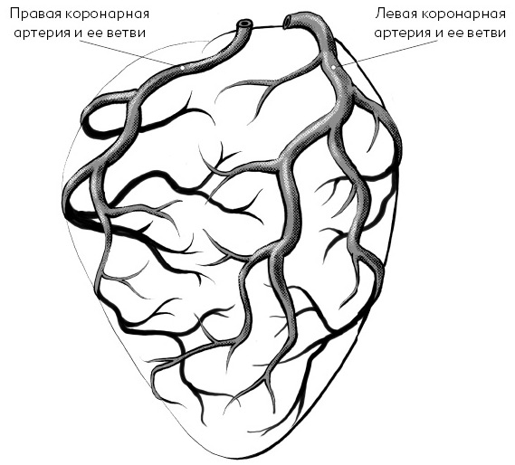 ВЛИЯНИЕ ПОЛА НА СТРУКТУРУ СЕРДЦАМасса сердца у здорового мужчины – приблизительно 330 г, а у женщины – 250 г. От этого органа отходят правая и левая коронарные артерии (1–3 мм в диаметре), которые далее разделяются на бесчисленное множество практически не видимых мелких ветвей. Именно эти артерии должны снабжать миокард достаточным количеством кислорода, необходимым для эффективного сокращения сердца (рис. 2.2).