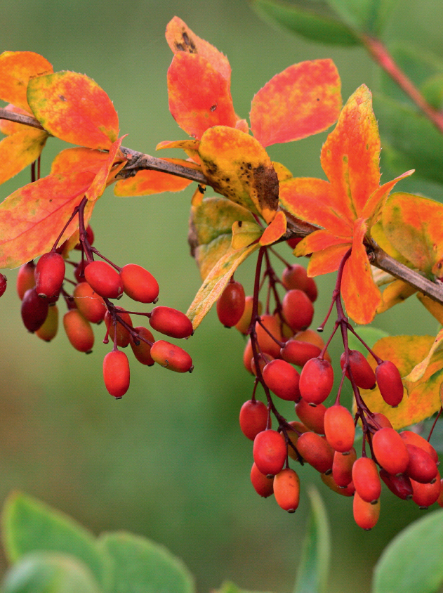 The berries are juicy and pleasantly tart, and make an excellent jelly with lamb. But it is a shame not to make use of their shape and colour, and the sense they give of being concentrated capsules of juice. Many of the most interesting uses of barberry have been partly decorative. They can be used as a dressing for roast duck – they burst during the cooking and baste the meat with their juice. Mrs Beeton suggests that ‘the berries arranged on bunches of nice curled parsley make an exceedingly pretty garnish for white meats’. Some cooks float the berries on top of fruit salads.