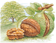 The walnut is a native of southern Europe, introduced to this country some 500 years ago for its wood and its fruit. Although not quick to spread outside cultivation, there are some self-sown trees in warm spots in the south, and nuts can be carried away from the parent trees by birds and mammals.