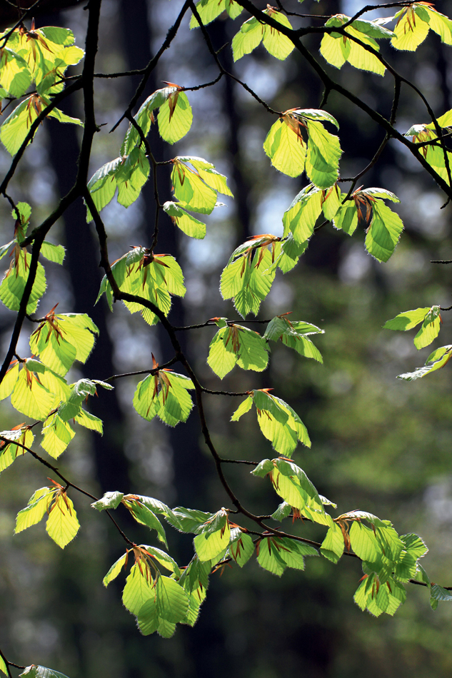 For those able to get this far, the results should be worthwhile. Every 500 g (1 lb) of nuts yields as much as 85 ml (3 fl oz) of oil. The oil itself is rich in fats and proteins, and provided it is stored in well-sealed containers it will keep fresh considerably longer than many other vegetable fats. Beechnut oil can be used for salads or for frying, like any other cooking oil. Its most exotic application is probably beechnut butter, which is still made in some rural districts in the USA, and for which there was a patent issued in this country during the reign of George I. In April the young leaves of the beech tree are almost translucent. They shine in the sun from the light passing through them. To touch they are silky, and tear like delicately thin rubber. It is difficult not to want to chew a few as you walk through a beechwood in spring. And, fresh from the tree, they are indeed a fine salad vegetable, as sweet as a mild cabbage though much softer in texture.