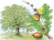 The oak tree has formed part of our folklore and history for centuries, not only as a source of timber for building houses and ships but also as a source of food. Like beechmast, however, the chief economic use of acorns has been as animal fodder, and they have been used as human food chiefly in times of famine. The raw kernels are forbiddingly bitter to most palates, but chopped and roasted they can be used as a substitute for almonds. In Europe the most common use of acorns has been to roast them as a substitute for coffee, and they were recommended for this role during the Second World War. Chop the kernels, roast to a light brown colour, grind up, then roast again.