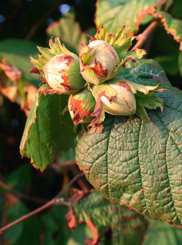 The hazel was among the first species to recolonise the British Isles after the last Ice Age. It is an extremely useful tree, with leaves that can be used as food for livestock, branches for building fences and shelters, and nuts that can be eaten as food. Widely eaten in prehistoric times, the hazelnut became part of Celtic legend – its compact shape, hard shell and nutritious fruit was an emblem of concentrated wisdom. Today they are grown commercially in many parts of the world, and are second only to the almond as a world nut crop. Hazelnuts begin to ripen in mid-September, at about the same time that the leaves begin to yellow. You may have to compete with the birds and squirrels, as the nuts do not just provide a treat for humans. Look for them at the edges of woods and in mature hedges. Search inside bushes for the nuts, as well as working round them, and scan them with the sun behind you if possible. Use a walking stick to bend down the branches, and gather the nuts into a basket that stays open whilst you are picking: a plastic bag with one handle looped over your picking wrist is a useful device.