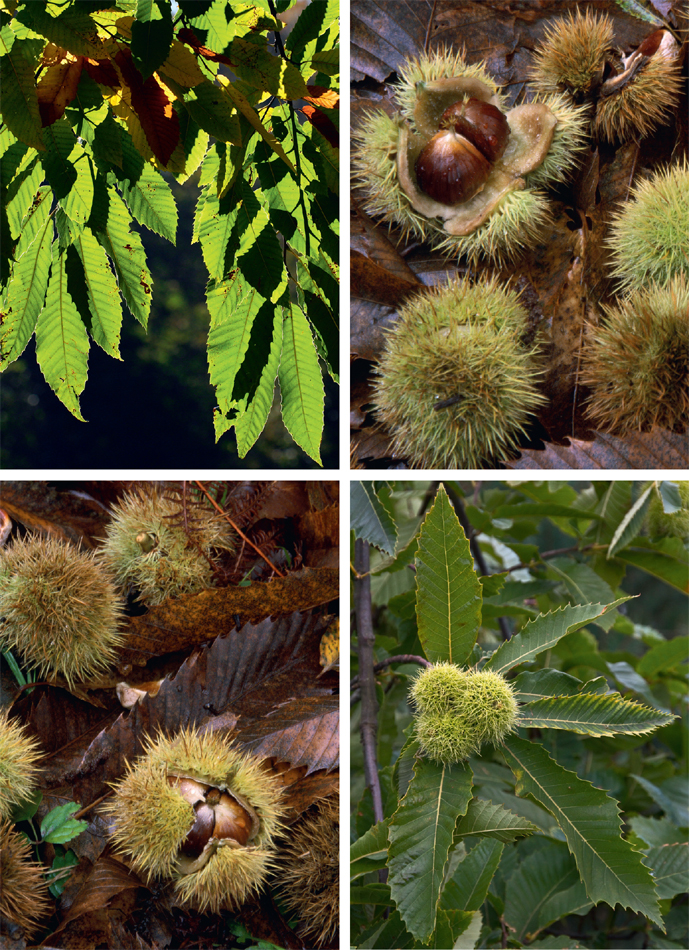 The best chestnut trees are the straight, old ones whose leaves turn brown early. Do not confuse them with horse chestnuts (Aesculus hippocastanum), whose inedible conkers look rather similar to sweet chestnuts inside their spiny husks. In fact the trees are not related, Castanea sativa being more closely related to the oak. They will be covered with the prickly fruit as early as September, and small specimens of the nuts to come will be blown down early in the next month. Ignore them, unless you can find some bright green ones which have just fallen. They are undeveloped and will shrivel within a day or two.