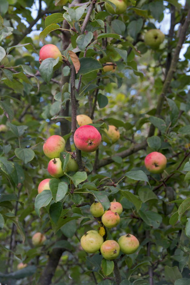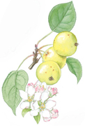 Most of the apples growing wild in the countryside are not true crab apples, but what are known as ‘wildings’ – that is, apples that have sprung naturally from the discarded cores of cultivated varieties. Apple varieties and species cross-fertilise very readily: this is why apple trees must be propagated by grafting if they are to stay true, and why it has been possible, over the last few centuries, for breeders to raise more than 6,000 named varieties. So don’t despise wilding apples. They are often sweet enough to eat raw, and here and there, for instance, in a hedge by an old orchard, you may find a descendant of an obsolete variety such as Margil, which still has some of its parents’ characteristics. True crab apples, which tend to be confined to old hedges and open woods, are best used for tart jellies and for pickling. They can be identified by their spiny branches, and by the smaller, harder and greener fruit. Use them not only by themselves, but mixed with other wild fruits for jellies or ‘hedgerow jam’; blackberry, elderberry, wild plums and hazelnuts are good companions. Alternatively, pickle the apples, unpeeled, in spiced vinegar as an accompaniment to roast pork. Thrown in the pan with the meat, they will burst and baste it with their juices.