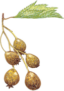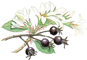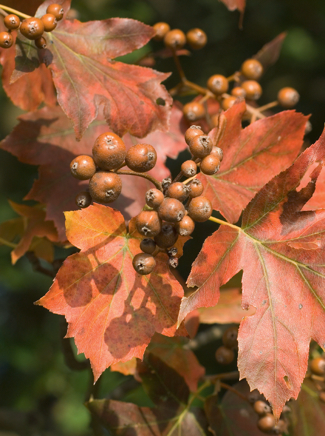 A relative of the rowan and the whitebeam, largely confined to ancient woods and hedgerows on limestone soils in the west and stiff clays in the Midlands and south. Up to 25 m (80 ft). Leaves are alternate, deeply toothed, in pairs. Flowers are white branched clusters, May to June. Fruit is brown and speckled, 12–18 mm (½–¾ inch).