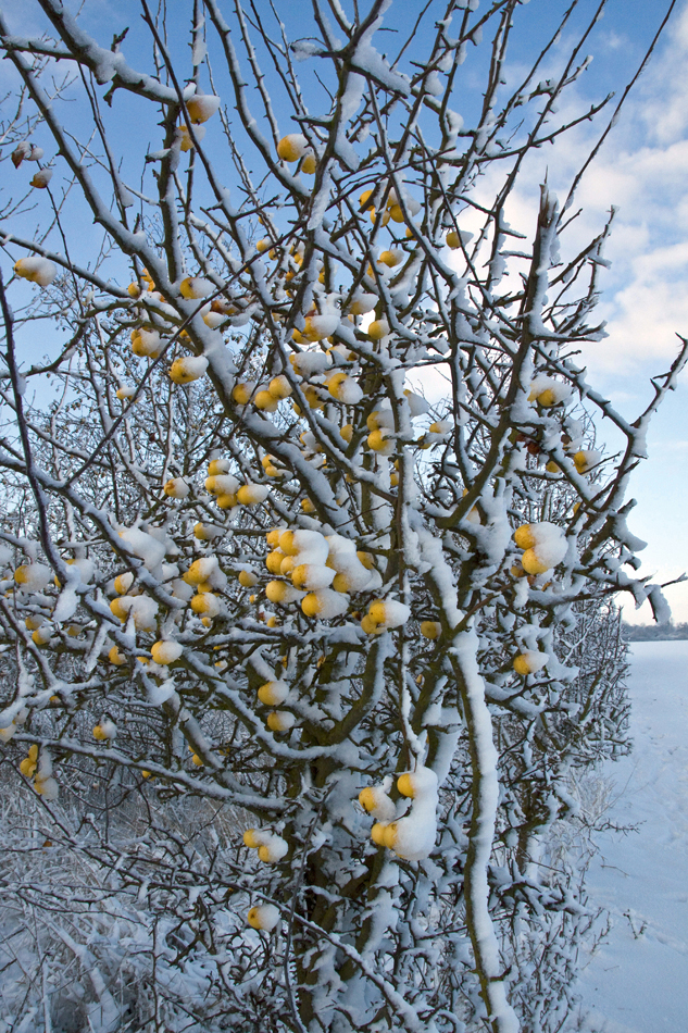 The fruits, which appear in September, are round or pear-shaped and the size of small cherries. They are hard and bitter at first, but as autumn progresses they ‘blet’ – or go rotten – and become very sweet. The taste is unlike anything else which grows wild in this country, with hints of damson, prune, apricot, sultana and tamarind.