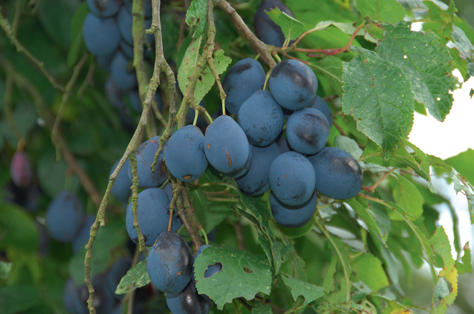 The true bullace, Prunus domestica ssp. insititia, may be a scarce native of old hedgerows, but the majority of wild plums found in the countryside are either seeded from garden trees or are reverted orchard specimens. Fruit blue-black, brownish, or green-yellow, and usually midway in size between a sloe and a cultivated damson.