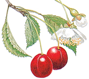 Widespread and frequent in hedgerows and woods, especially beech. A lofty tree, up to 30 m (100 ft) high, with shining, reddish-brown bark and an abundance of five-petalled white flowers in the spring. Leaves are alter-nate, oval, sharply toothed. The fruit is like a small, dark or light red, cultivated cherry.