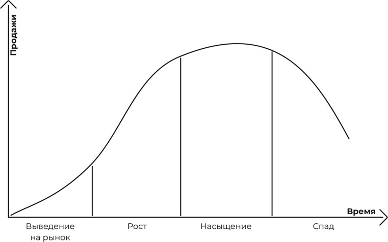 Рассмотрим подробнее по двум шкалам – время и продажи. В какой период времени будут максимальные продажи, а когда спрос уменьшится и перестанет приносить доход создателям.