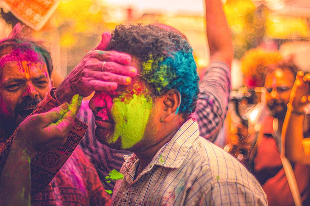 Mit dem Holi-Fest begrüßt Indien den Frühling. Das „Fest der Farben“ findet zu Ehren des Hindu-Gottes Krishna statt. Ob jung oder alt, hohe oder niedrige Kaste, reich oder arm zählt nicht, man bewirft sich mit buntem Staub, tanzt und ist fröhlich.