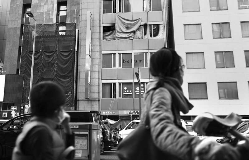 Прохожие смотрят на клинику в Осаке 18 декабря 2021 года, на следующий день после пожара