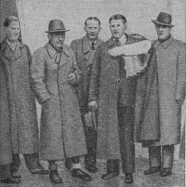 Американцам гитлеровские ракетчики предпочли сдаться в штатской одежде. Слева направо: лейтенант Магнус фон Браун, генерал-лейтенант Дорнбергер (в шляпе и с сигарой), Вернер фон Браун (с театрально загипсованной рукой).