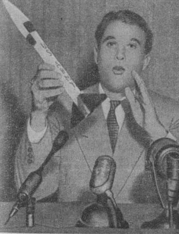 Бывший штурмбанфюрер СС Вернер фон Браун охотно позирует перед объективами американских телевизионных камер. Ракетчик обрел новых боссов. Теперь он держит в своих руках американскую ракету!