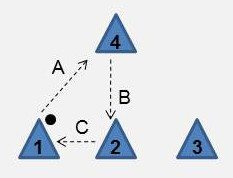 - The player with ball passes the ball to one of the two others. These two have to make 10 fast passes between themselves. If they succeed in doing this, the third player has to do press-ups - if he touches the ball, the other two have to do press-ups. The distance between the two should not exceed 5 metres.