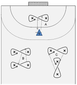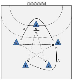 - passing the ball in an anticlockwise direction, running clockwise and vice versa (more dynamic movement!)