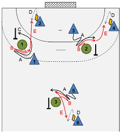 - As soon as one attacking player has touched the pole (C), he calls out “STOP”.